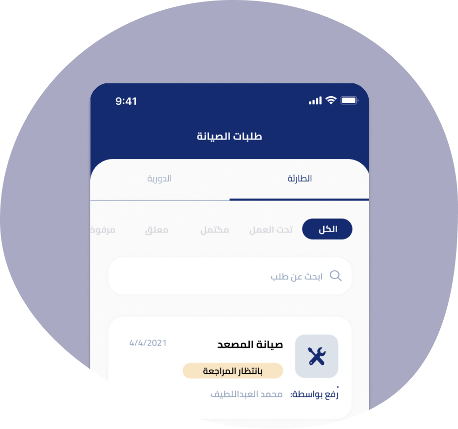ﺑﺈﻣﻜﺎﻧﻚ رﻓﻊ ﻃﻠﺐ ﺻﻴﺎﻧﺔ ﺟﺪﻳﺪ ﻟﻠﻤﻨﺎﻃﻖ اﻟﻤﺸﺘﺮﻛﺔ ومتابعة انجاز أعمال الصيانة المجدولة من قبل مزود الصيانة والتشغيل