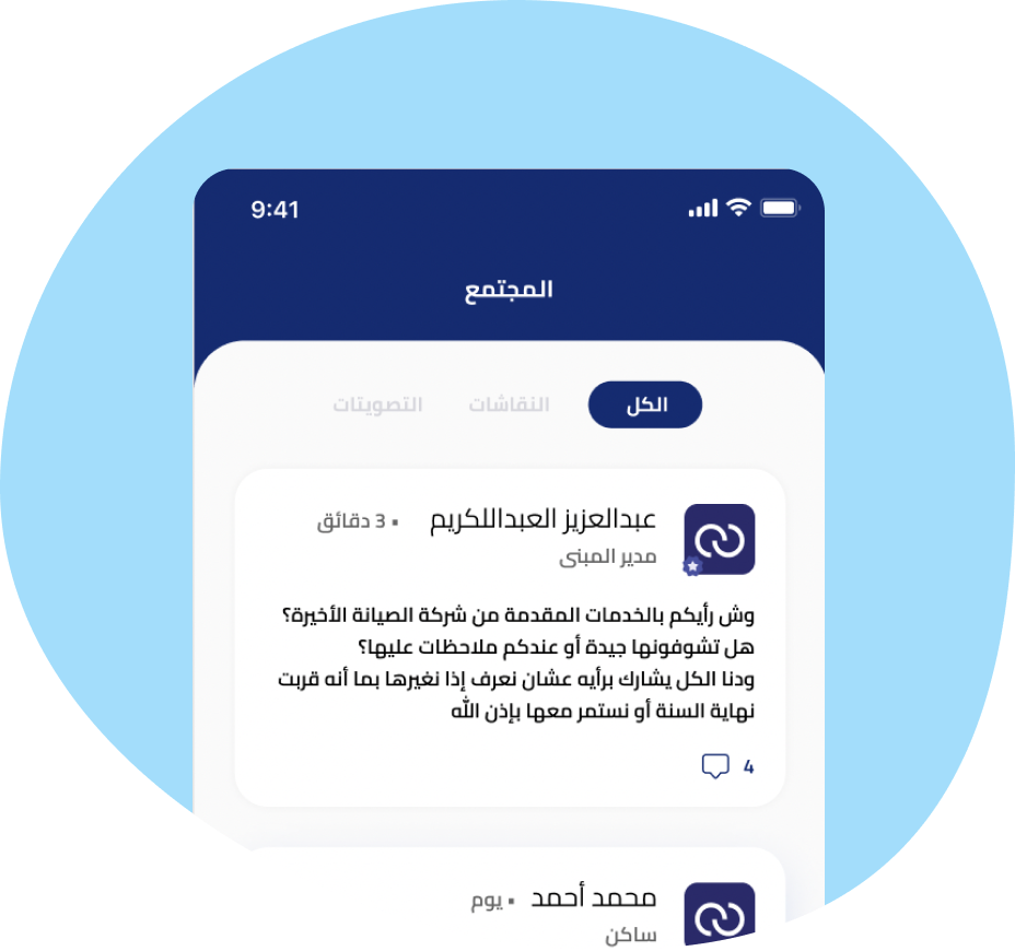 تطبيق اتحاد الملاك يقدم لك ولمدير العقار الوسيلة المناسبة للتواصل مع جيرانك من أجل الاعتناء بالعقار المشترك مع مكانية الوصول للمستندات المشتركة ومتابعة أعمال الصيانة.
